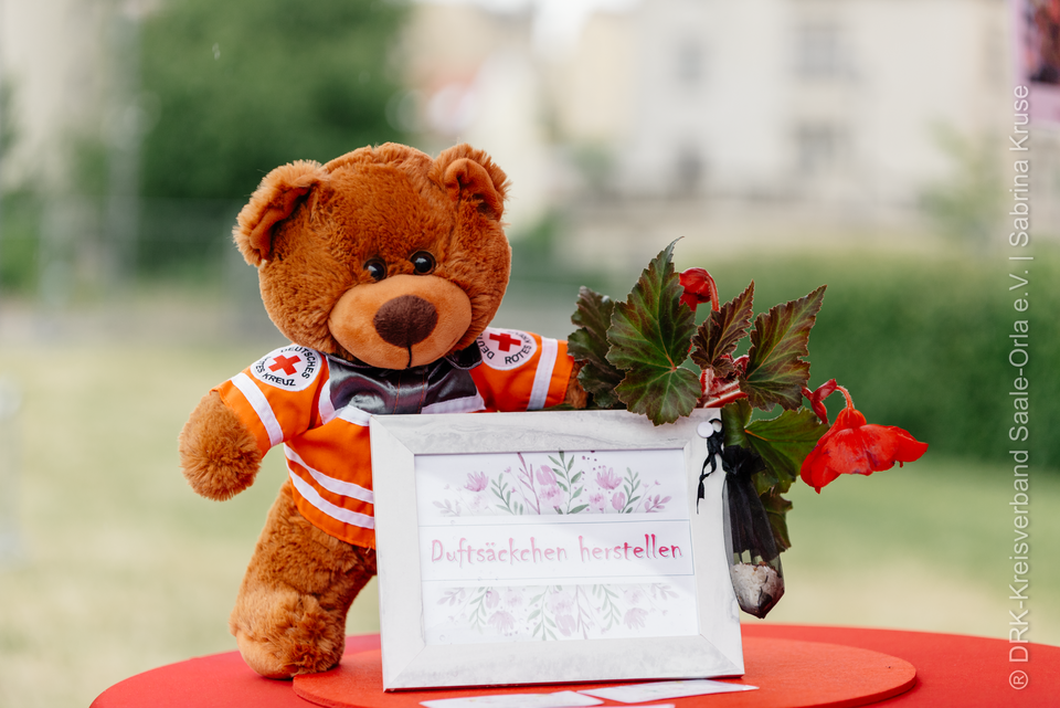 Im Außenbereich präsentierte die DRK-Wasserwacht ihre Arbeit im Bereich der Wasserrettung und des Bevölkerungsschutzes. Anhand von Ausrüstungsgegenständen und Informationsmaterialien konnten sich Interessierte über die Aufgaben und Einsatzgebiete der Wasserwacht, des Ehrenamts und Rettungsdienst informieren. Es gab zahlreiche Angebote für Kinder, wie Bobbycar Rennen, Rettungswagen basteln, den Geruchssinn auf die Probe stellen bis hin zum Rettungswagen besichtigen und Erste Hilfe Maßnahmen durchführen.
