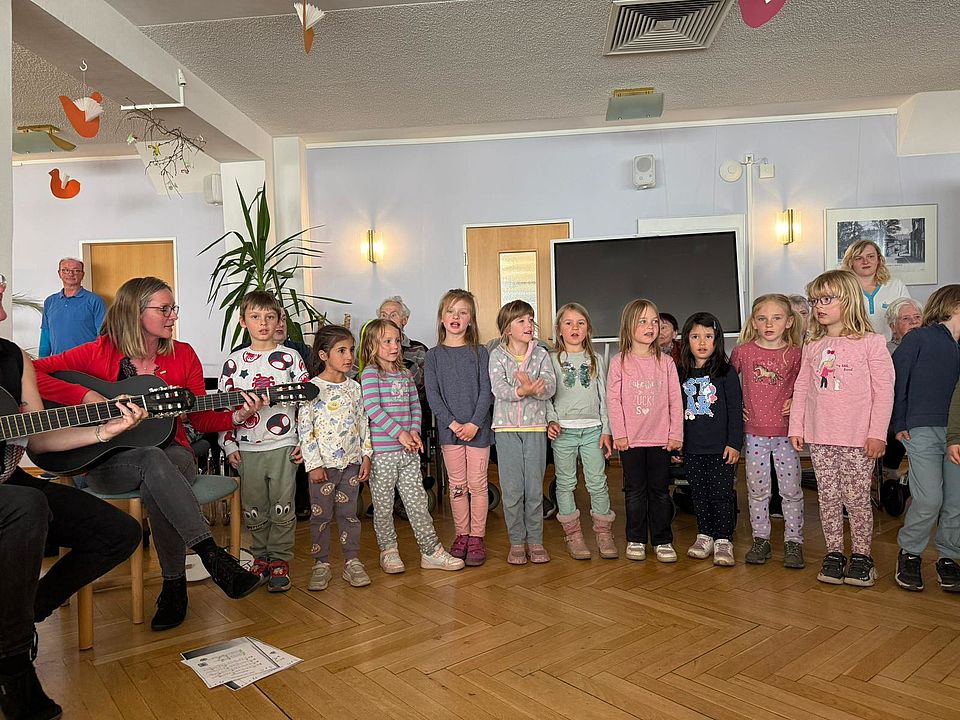 Insgesamt 74 Gäste genossen den Nachmittag bei Kaffee und selbstgebackenem Kuchen und freuten sich, "alte" Weggefährten wieder zu sehen. Der Chor des Pflegeheimes und Kinder aus dem DRK-Kindergarten „Knirpsenland“ in Pößneck gestalteten ein kleines Programm, dass allen Gästen gut gefiel. Bei einem Gläschen Sekt und nettem Plausch klang der Nachmittag zur Zufriedenheit aller Gäste aus.