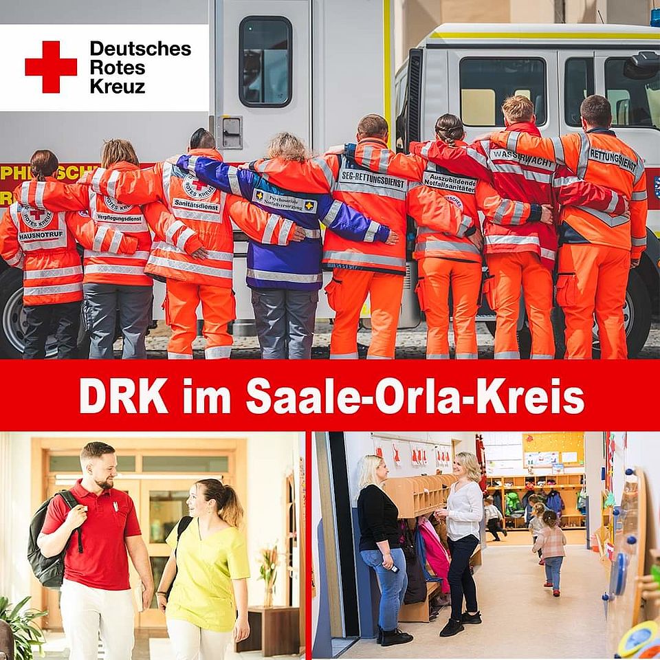 Hallo und herzlich willkommen auf unserer neuen „DRK im Saale-Orla-Kreis“-Facebookseite! Wir freuen uns sehr, dass Sie unserem Unternehmensaccount folgen. Hier erfahren Sie einiges über unseren DRK-Rettungsdienst und die DRK-Einrichtungen wie Kindergärten, Beratungsstellen, Sozialläden, Stationäre Pflegeeinrichtungen, Tagespflege sowie unsere Ambulanten Pflegedienste. Natürlich informieren wir Sie auch über Blutspendetermine, Aktionen, Veranstaltungen, ehrenamtliche Tätigkeiten und geben Einblicke in unsere tägliche Arbeit. - Seien Sie gespannt! Sie haben auch die Möglichkeit, mit unserem Team in Kontakt zu treten und Ihre Fragen zu stellen. Wir schätzen Ihr Interesse an unserem Unternehmen und freuen uns darauf, Sie als Teil unserer Community begrüßen zu dürfen!