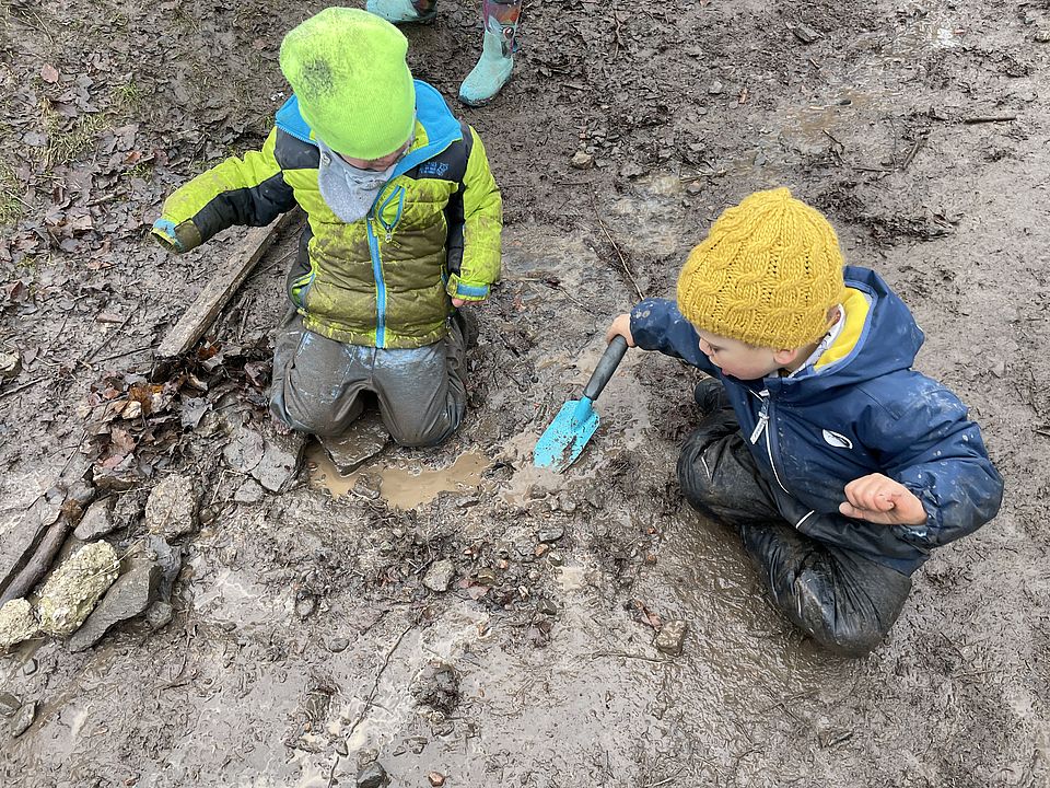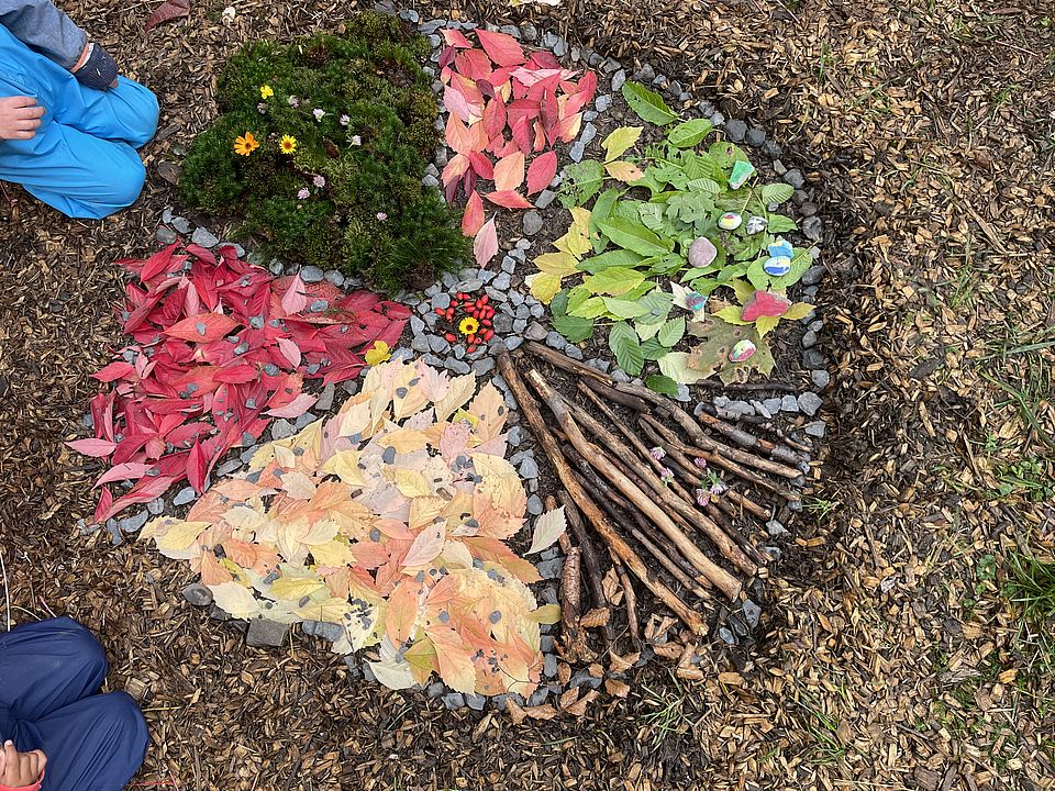 Durch das tägliche Erleben der Natur lernen die Kinder spielerisch den respektvollen Umgang mit ihrer Umwelt. Sie beobachten die Veränderungen der Jahreszeiten, entdecken Tiere und Pflanzen und sammeln wertvolle Erfahrungen durch kreatives Gestalten mit Naturmaterialien.