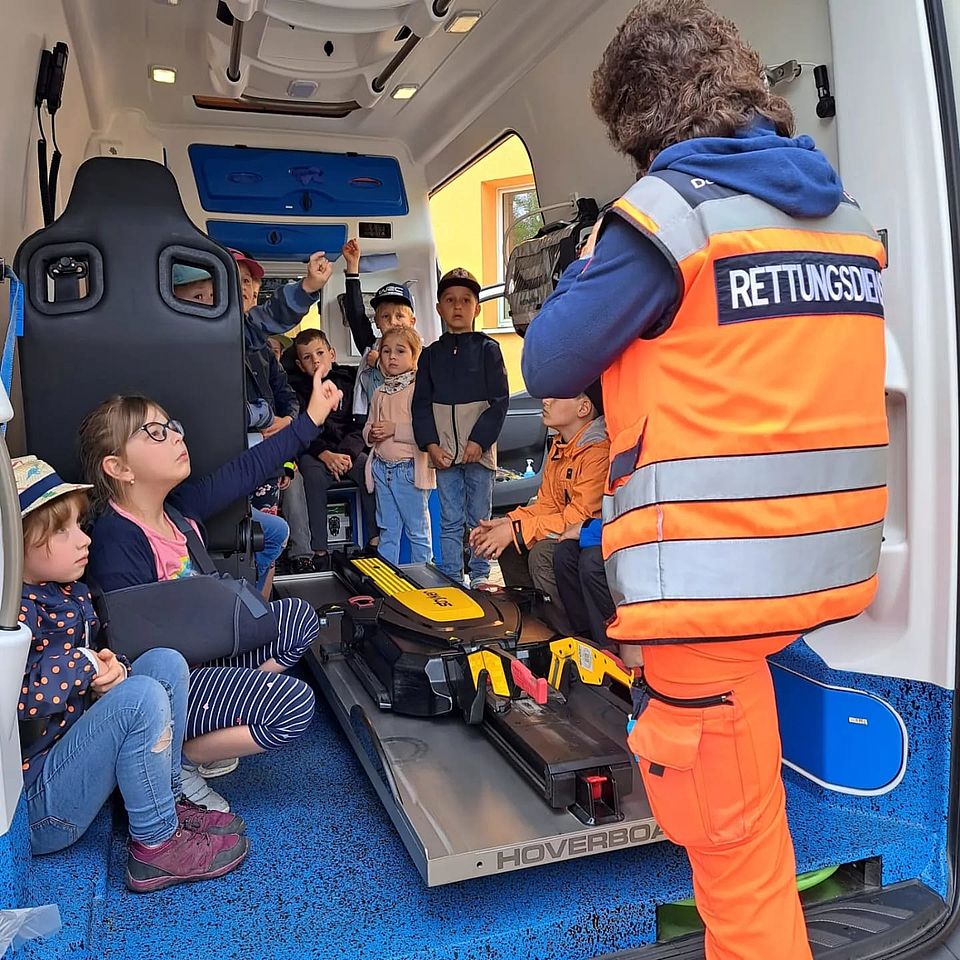 Die Kolleginnen und Kollegen des Rettungsdienstes besuchten die Grundschule in Neunhofen. Dabei konnten die Kids die Fahrzeuge anschauen und erfuhren viel Interessantes. Insbesondere wurde darüber gesprochen, was in einem Notfall zu tun ist um anderen Menschen zu helfen und wie man richtig einen Notruf absetzt.