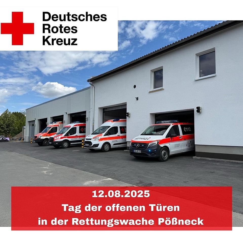 Wir laden alle interessierten Bürgerinnen und Bürger sowie auch unsere Mitarbeiterinnen und Mitarbeiter aus anderen Einrichtungen des DRK ein, die neue Rettungswache in Pößneck zu besichtigen.