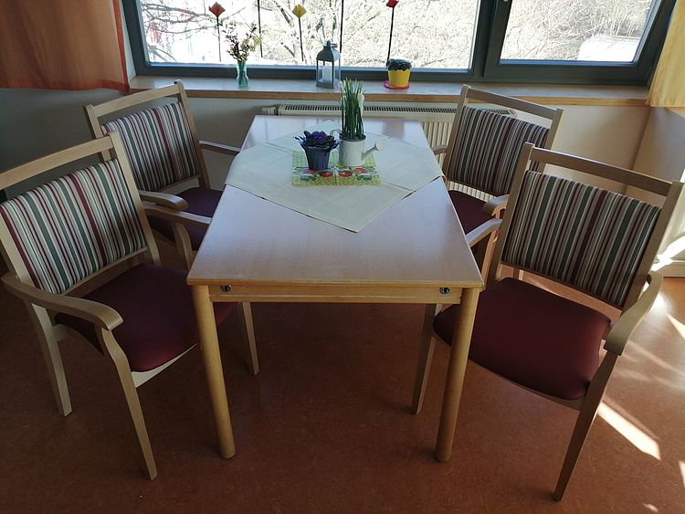 Wünschenswert für das Krankheitsbild Demenz ist es, möglichst viele persönliche Dinge mitzubringen, damit sich Bewohner und Bewohnerinnen wohl fühlen. Zentraler Punkt jeder Ebene ist der Aufenthaltsraum, wo sich die Bewohner zu den Mahlzeiten sowie zu den Aktivitäten der Betreuung treffen.